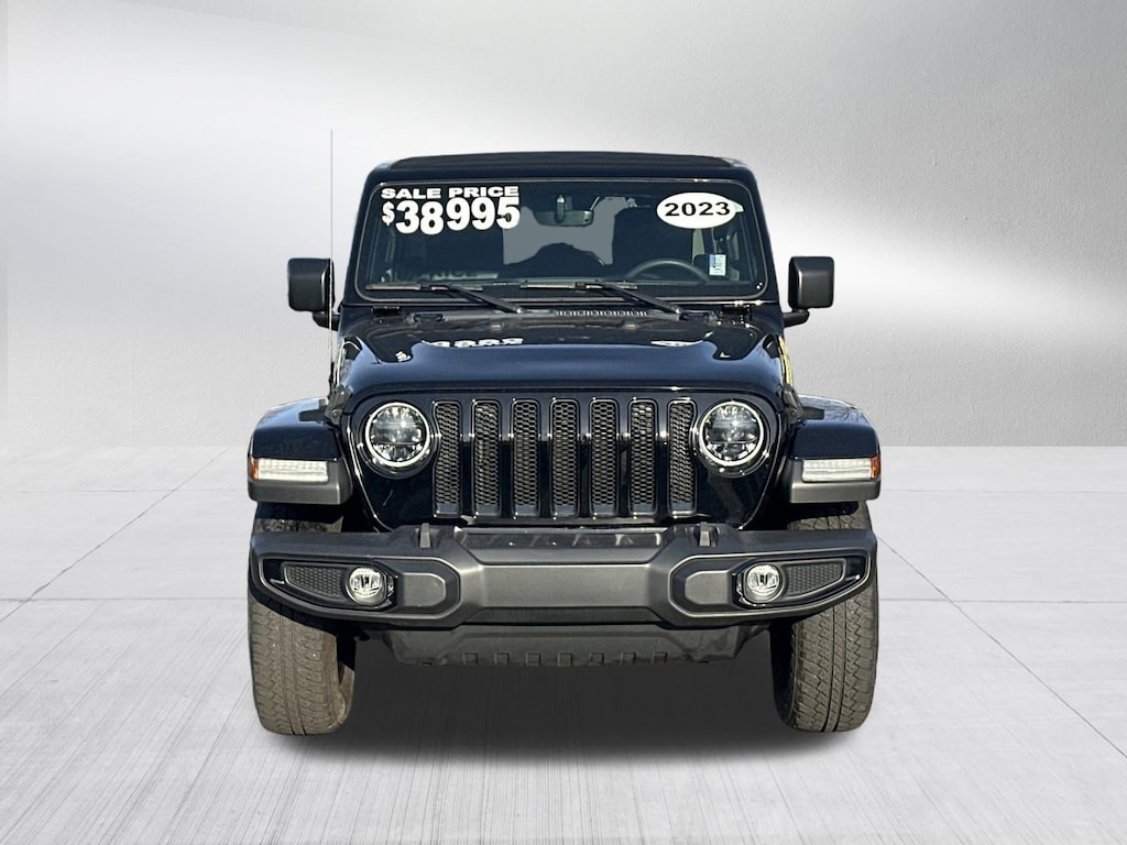 ALTITUDE WITH SKY ONE TOUCH POWERTOP 4X4, CERTIFIED PRE OWNED INCLUDES WARRANTY, BLACK WHEELS, GPS / NAVIGATION, ELECTRONIC INFOTAINMENT SYSTEM GROUP WITH 8.4 INCH TOUCHSCREEN AND ALPINE PREMIUM AUDIO, REAR BACK UP CAMERA, LEATHER INTERIOR, LED LIGHTING GROUP, COLD WEATHER GROUP, HEATED SEATS, HEATED STEERING WHEEL, HILL DESCENT CONTROL, SATELLITE RADIO, KEYLESS ENTRY, PUSH BUTTON START, REMOTE START, SIDE AIRBAGS, UCONNECT VOICE COMMAND WITH BLUETOOTH, STEERING WHEEL MOUNTED AUDIO CONTROLS, DUAL ZONE FRONT CLIMATE, FACTORY SECURITY SYSTEM, RUNNING BOARDS, FOG LAMPS, TRAILER TOW AND HD ELECTRICAL GROUP, TIRE PRESSURE MONITORING DISPLAY, ALL POWER AND MUCH MORE, CARFAX CERTIFIED, INCLUDES THE REMAINDER OF THE FACTORY WARRANTY, EXTENDED WARRANTY AVAILABLE, SOME OFFERS INCLUDE FINANCING WITH APPROVED LENDERS FOR ADVERTISED PRICE., ABS brakes, Alloy wheels, Compass, Electronic Stability Control, Front dual zone A/C, Heated door mirrors, Illuminated entry, Low tire pressure warning, Navigation System, ParkView Rear Back-Up Camera, Remote keyless entry, Traction control. Black Clearcoat 2023 Jeep Wrangler Altitude 2.0L I4 DOHC 4WD