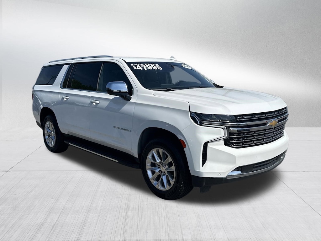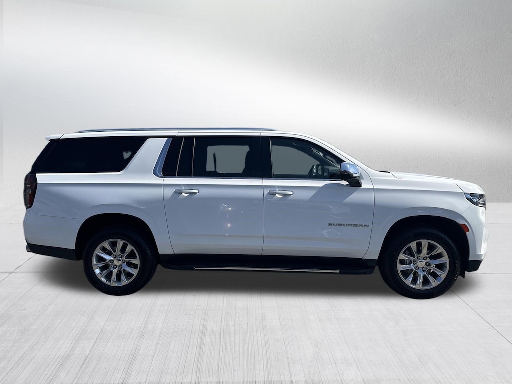 PREMIER, 4 BRAND NEW TIRES, FACTORY 20 INCH WHEELS, APPLE CARPLAY, AUTOMATIC TRANSMISSION, LEATHER INTERIOR, TOUCHSCREEN DISPLAY, MIDDLE ROW CAPTAIN CHAIRS, 3RD ROW SEATING, HEATED SEATS, VENTILATED FRONT SEATS, BLIND SPOT & CROSS PATH DETECTION, LANESENSE LANE DEPARTURE WARNING PLUS, FORWARD COLLISION WARNING PLUS, BOSE AUDIO, SATELLITE RADIO, KEYLESS ENTRY, PUSH BUTTON START, REMOTE START, SIDE AIRBAGS, POWER LIFTGATE, REAR PARK ASSIST SENSORS, BLUETOOTH, STEERING WHEEL MOUNTED AUDIO CONTROLS, DUAL POWER SEAT WITH DRIVER MEMORY, DUAL ZONE FRONT CLIMATE, REAR ZONE CLIMATE, FACTORY SECURITY SYSTEM, FOG LAMPS, TIRE PRESSURE MONITORING DISPLAY, ALL POWER AND MUCH MORE, CARFAX CERTIFIED, 1 OWNER, INCLUDES THE REMAINDER OF THE FACTORY WARRANTY, EXTENDED WARRANTY AVAILABLE, SOME OFFERS INCLUDE FINANCING WITH APPROVED LENDERS FOR ADVERTISED PRICE.. Summit White 2023 Chevrolet Suburban Premier EcoTec3 5.3L V8 RWD