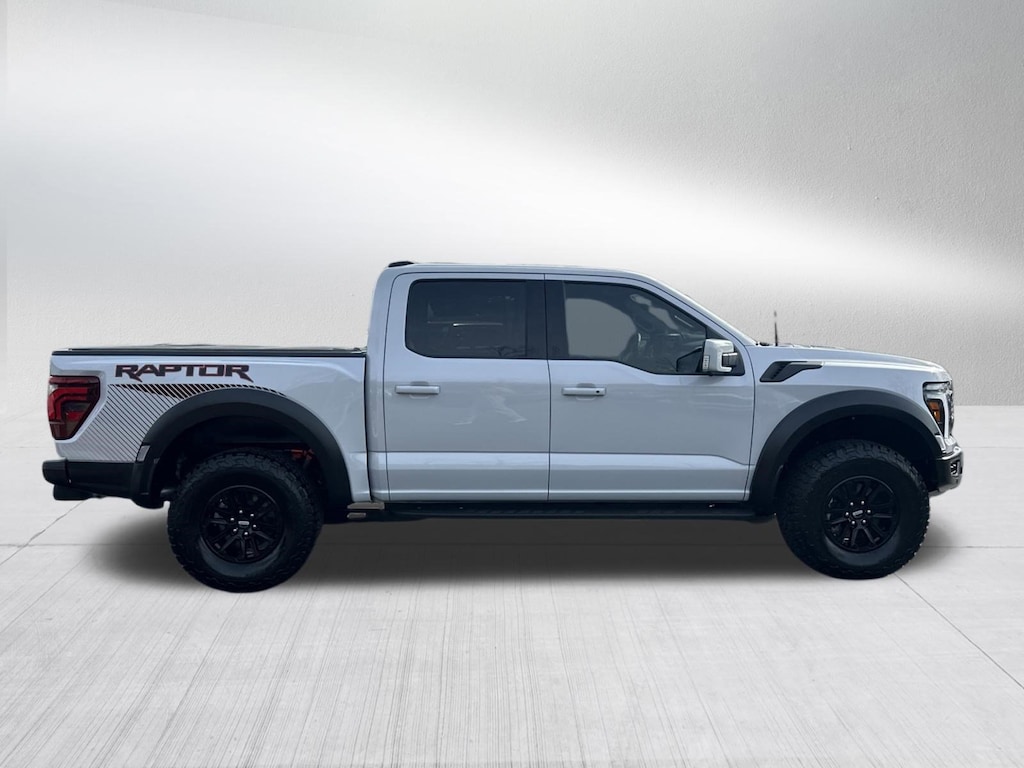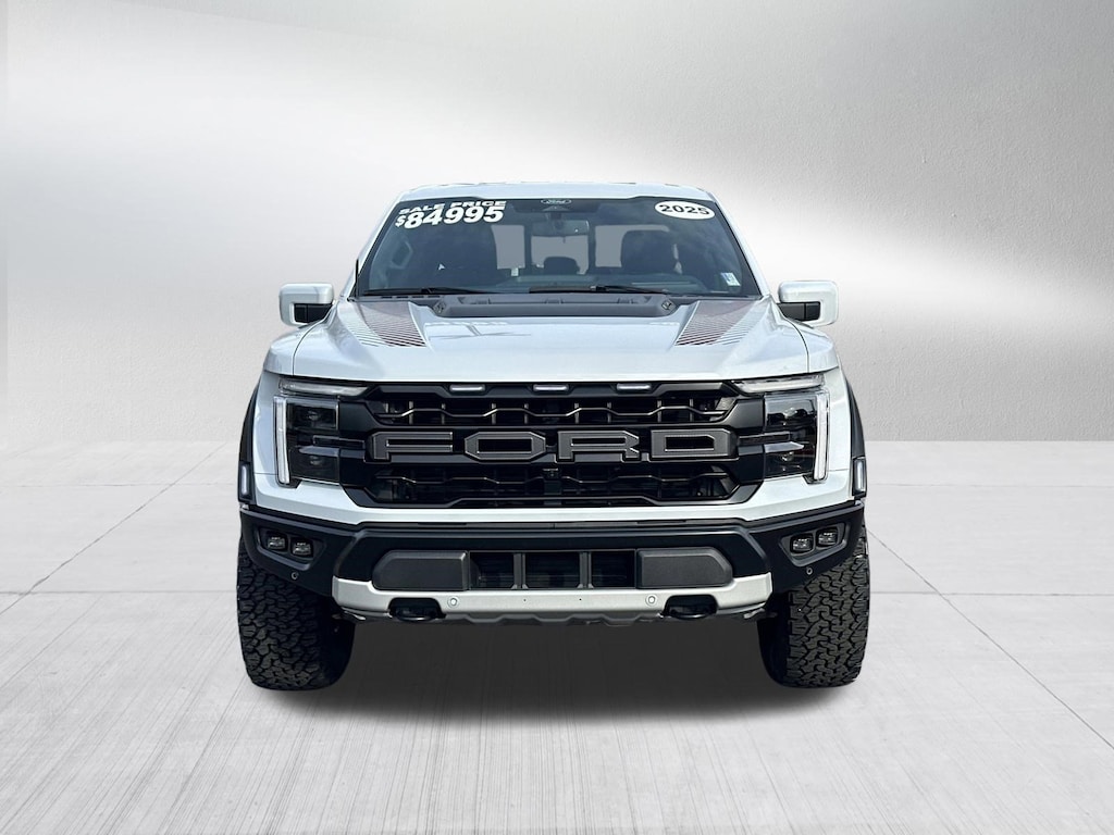 RAPTOR 4X4, GPS / NAVIGATION, HEADS UP DISPLAY, SURROUND VIEW 360 DEGREE CAMERA, AUTOMATIC TRANSMISSION, ADAPTIVE CRUISE CONTROL, BLIND SPOT & CROSS PATH DETECTION, LANESENSE LANE DEPARTURE WARNING PLUS, FORWARD COLLISION WARNING PLUS, LEATHER INTERIOR, TOUCHSCREEN DISPLAY, HEATED SEATS, HEATED STEERING WHEEL, VENTILATED FRONT SEATS, POWER ADJUSTABLE PEDALS, SATELLITE RADIO, KEYLESS ENTRY, PUSH BUTTON START, REMOTE START, SIDE AIRBAGS, FRONT & REAR PARK ASSIST SENSORS, BLUETOOTH, STEERING WHEEL MOUNTED AUDIO CONTROLS, DUAL POWER SEAT WITH DRIVER MEMORY, DUAL ZONE FRONT CLIMATE, FACTORY SECURITY SYSTEM, TONEAU COVER, FOG LAMPS, TOWING PACKAGE / HITCH, TIRE PRESSURE MONITORING DISPLAY, ALL POWER AND MUCH MORE, CARFAX CERTIFIED, 1 OWNER, INCLUDES THE REMAINDER OF THE FACTORY WARRANTY, EXTENDED WARRANTY AVAILABLE, SOME OFFERS INCLUDE FINANCING WITH APPROVED LENDERS FOR ADVERTISED PRICE.. White Metallic 2025 Ford F-150 Raptor 3.5L V6 EcoBoost 4WD