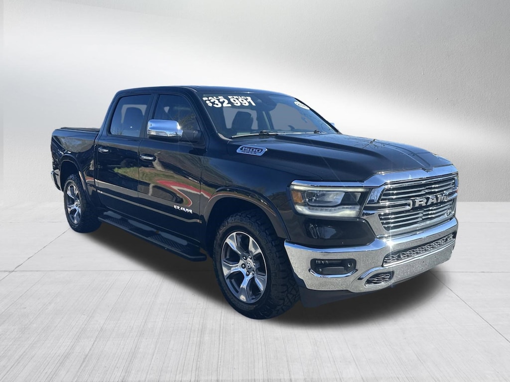 LARAMIE 5.7L V8 HEMI 4X4, PANORAMIC SUNROOF, GPS / NAVIGATION, LEVEL 1 GROUP, REAR BACK UP CAMERA, AUTOMATIC TRANSMISSION, BLIND SPOT & CROSS PATH DETECTION, LEATHER INTERIOR, FACTORY 20 INCH WHEELS, 8.4 INCH TOUCHSCREEN, HEATED SEATS, HEATED STEERING WHEEL, VENTILATED FRONT SEATS, POWER ADJUSTABLE PEDALS, SATELLITE RADIO, KEYLESS ENTRY, PUSH BUTTON START, REMOTE START, SIDE AIRBAGS, POWER REAR SLIDING WINDOW, FRONT & REAR PARK ASSIST SENSORS, UCONNECT VOICE COMMAND WITH BLUETOOTH, STEERING WHEEL MOUNTED AUDIO CONTROLS, DUAL POWER SEAT WITH DRIVER MEMORY, DUAL ZONE FRONT CLIMATE, FACTORY SECURITY SYSTEM, RUNNING BOARDS, TONEAU COVER, FOG LAMPS, TOWING PACKAGE / HITCH, TIRE PRESSURE MONITORING DISPLAY, ALL POWER AND MUCH MORE, CARFAX CERTIFIED, EXTENDED WARRANTY AVAILABLE, SOME OFFERS INCLUDE FINANCING WITH APPROVED LENDERS FOR ADVERTISED PRICE.. Diamond Black Crystal Pearlcoat 2020 Ram 1500 Laramie HEMI 5.7L V8 Multi Displacement VVT 4WD