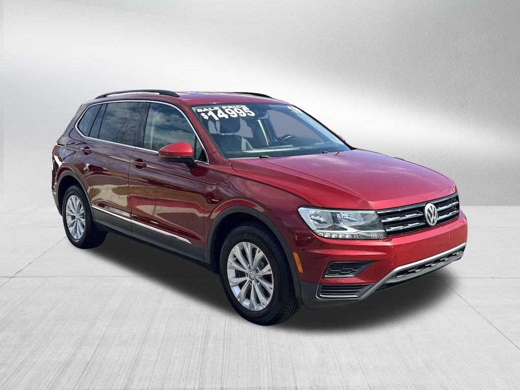 SE, APPLE CARPLAY, REAR BACK UP CAMERA, AUTOMATIC TRANSMISSION, BLIND SPOT & CROSS PATH DETECTION, LEATHER INTERIOR, TOUCHSCREEN DISPLAY, HEATED SEATS, SATELLITE RADIO, KEYLESS ENTRY, PUSH BUTTON START, BLUETOOTH, STEERING WHEEL MOUNTED AUDIO CONTROLS, POWER SEAT, DUAL ZONE FRONT CLIMATE, ALLOYS, FOG LAMPS, TIRE PRESSURE MONITORING DISPLAY, ALL WEATHER RUBBER FLOOR MATS, ALL POWER AND MUCH MORE, CARFAX CERTIFIED, EXTENDED WARRANTY AVAILABLE, SOME OFFERS INCLUDE FINANCING WITH APPROVED LENDERS FOR ADVERTISED PRICE.. Cardinal Red Metallic 2018 Volkswagen Tiguan 2.0T SE 2.0L TSI DOHC FWD 22/27 City/Highway MPG